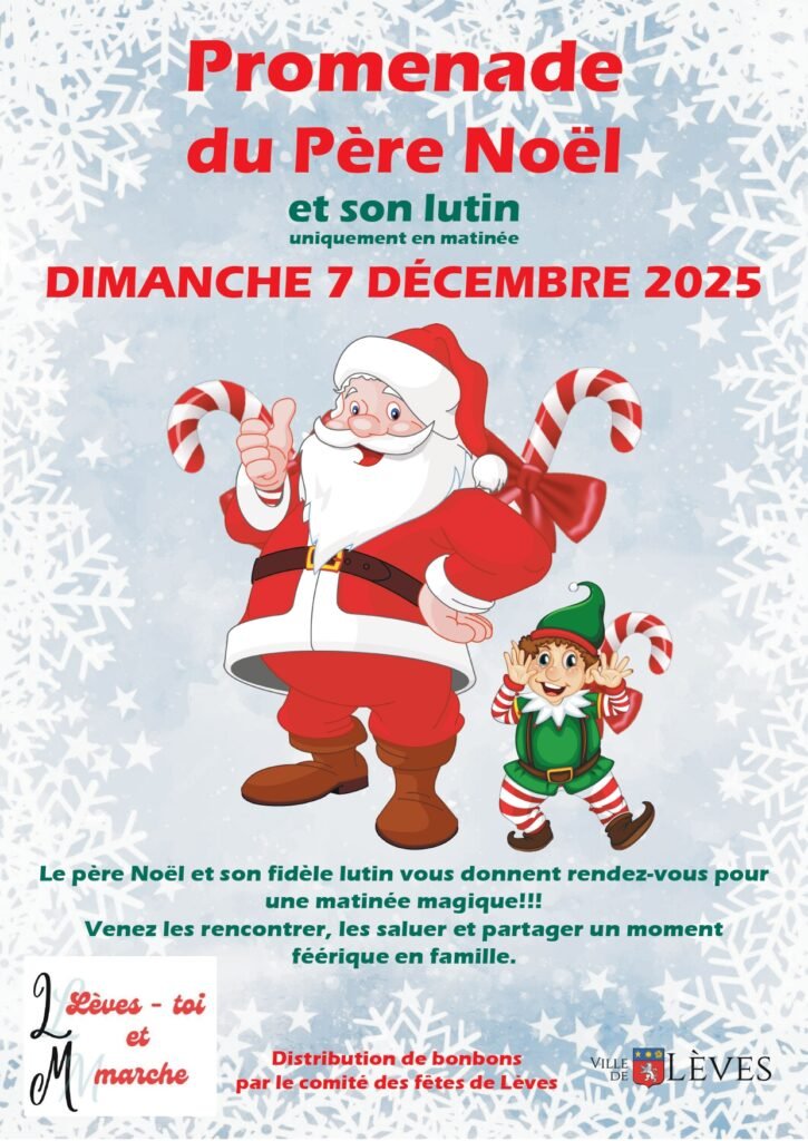 Animations : Initiatives variées telles que la calèche du Père Noël, un concours de décoration de Noël, un concours photo pour la création des cartes postales de la ville de Lèves, et des actions pour le Téléthon.